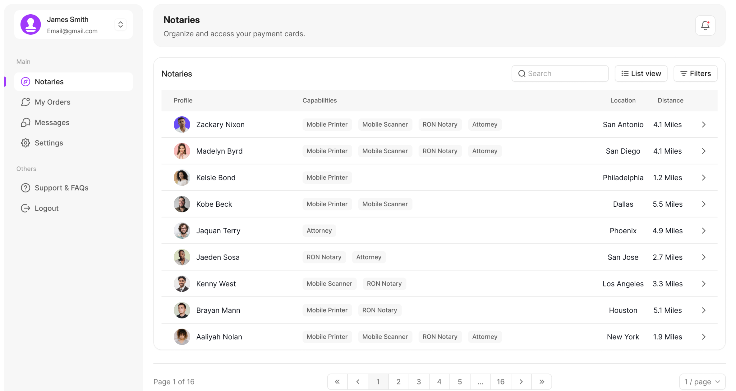 Upload your notary documentation and credentials to your profile. Verified profiles receive priority placement and more signing opportunities.
